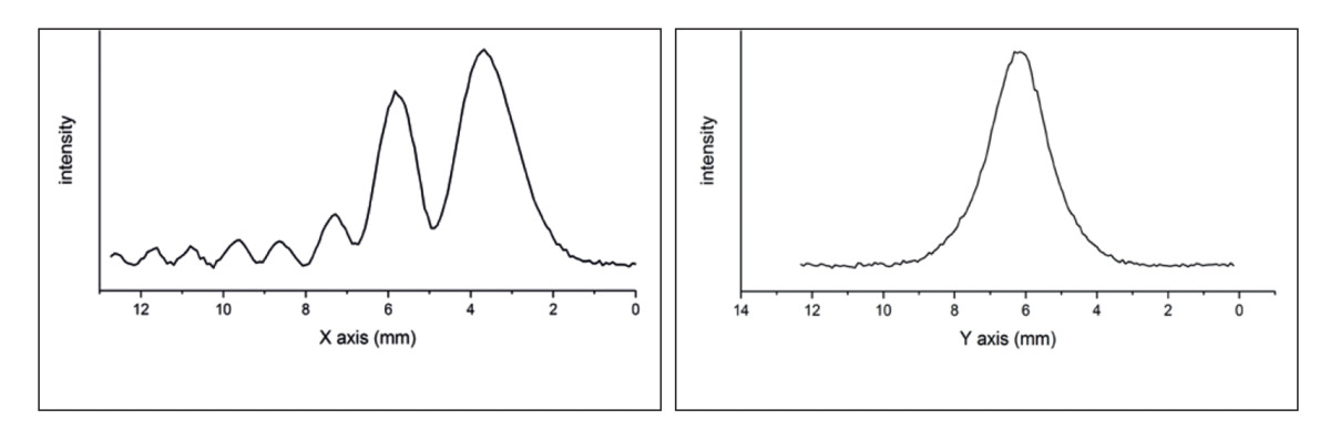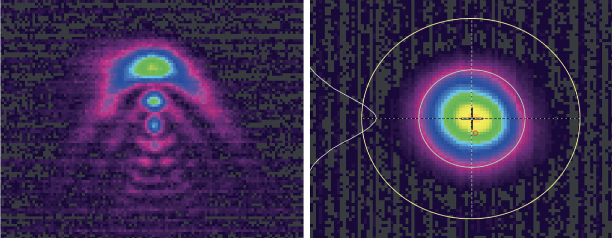 Sergius Janik describes a concrete application as an example of the enormous time savings achieved by the Ophir Pyrocam. During a series of tests conducted by the DiaMonTech lab on a new laser, the engineers were unable to focus the beam. The power distribution of the beam was very irregular, but the cause was not obvious at first glance. The images taken with the Pyrocam provided an explanation. Instead of the desired symmetrical Gaussian beam profile, the beam appeared strongly distorted (see Fig. 6, left). These results showed that the collimating lens of the beam was out of adjustment, which may have occurred during shipment. The laser system was sent back to the manufacturer, the lens was re-adjusted, and then the Pyrocam measurements showed a uniform beam profile, as in Fig. 6 on the right.