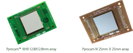 The Pyrocam consists of a LiTa03 pyroelectric crystal mounted with indium bumps to a solid-state readout multiplexer. This sensor, developed as part of Ophir's core technology for the Pyrocam I, has proven to be the most rugged, stable, and precise IR detector array available. Light impinging on the pyroelectric crystal is absorbed and converted to heat, which creates charge on the surface. The multiplexer then reads out this charge. For use with short laser pulses, the firmware in the camera creates a very short electronic shutter to accurately capture the thermally generated signal.