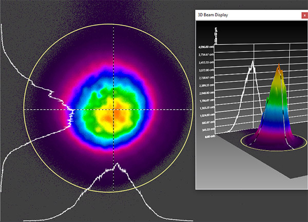 - Indirect measuring, without interaction with the beam. This technique is based on imaging of the beam’s Rayleigh scattered light from the side, which is used in the Ophir BeamWatch