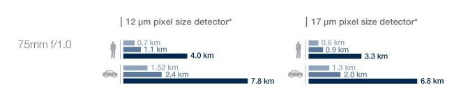 SupIR 75 mm f/1.0 Detection, Recognition & Identification (DRI) Range