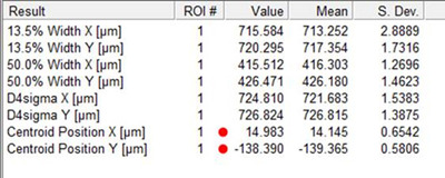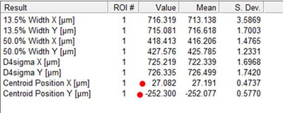 7. Illuminate the detector with a beam and try to center it as close to the 0 as possible. Use the Centroid Position X & Y in your results area to see where the centroid position is in relation to the 0 position.