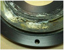 Most Ophir water cooled sensors have a hard anodized housing and in rare cases depending on the water composition, the housing can corrode. (see fig. 1) This usually begins at a crack in the anodize coating of the housing exposing the bare aluminum. Cracks can develop a local chemistry, resulting in localized acidity and concentrations of non-volatile impurities, that greatly accelerates corrosion.