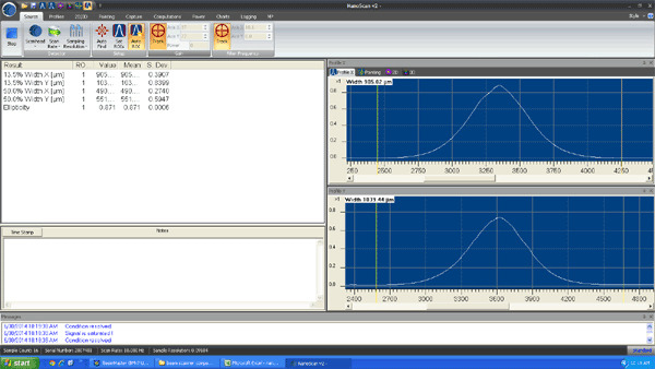 In the example above, we found that when rotating the NanoScan 90 degrees, the yaxis continued to measure 1040 microns; if the beam was truly elliptical, it should have measured 905 microns instead. The x-axis continued to measure around 900 microns after this rotation, owing to the fact this slit was not damaged.