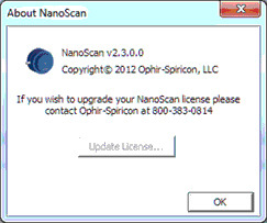 The NS v2 software is the same for both Standard and Professional, no need to download/install a different version. To perform the upgrade you must purchase the license for the NS v2 Professional. With the included license key you can click on the blue scanhead image in the left corner and select About from the dropdown, where you can then upgrade the scanhead from the Upgrade License box (see below).
