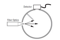 By replacing the front flange of the sensor with a fiber optic adapter, the integrating sphere is easily used be measure fibers. These fiber optic adapters are available for all models of Ophir spheres. Because the typical output from an optical fiber is slowly diverging, the first reflection spot at the opposite side of the source is not highly concentrated. Therefore, often either collimated beam configuration or the divergent configuration is fine. However, in case of lensed fiber, the divergent beam configuration is recommended due to the increased NA of the fiber. In case of using a fiber collimator, the collimated beam configuration is recommended.